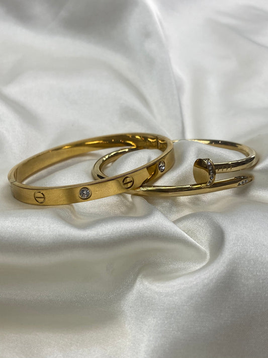Carti Stainless Steel CZ Gold Bangle - engraved