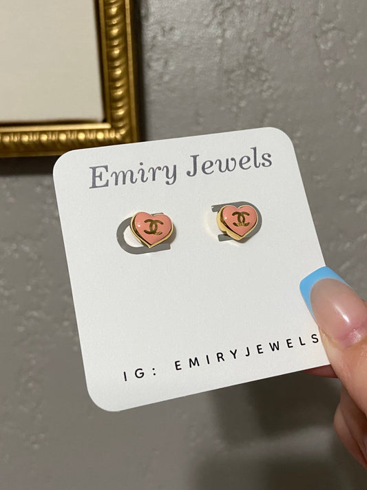 Tiff & Co Stainless Steel Heart Gold Huggie Earrings