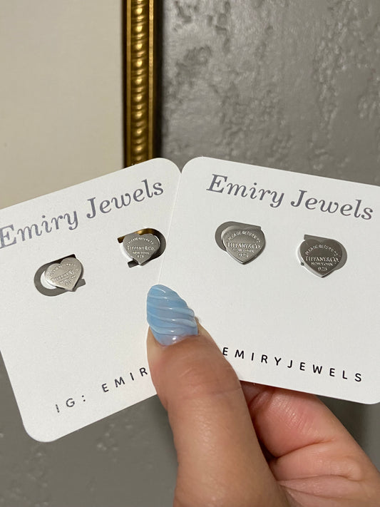 Tiff & Co Stainless Steel Heart Gold Huggie Earrings