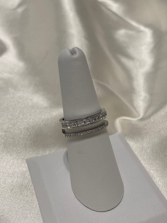 Chunky CZ Layered Stainless Steel Silver Ring