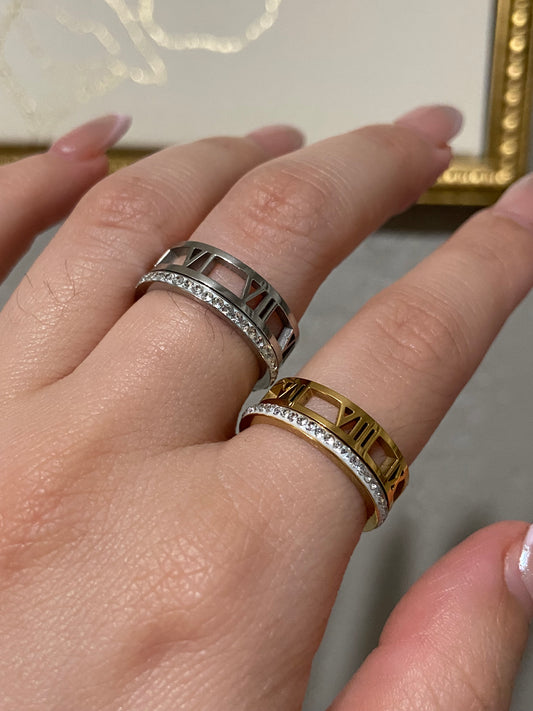 CZ Layered Roman Numeral Stainless Steel Ring
