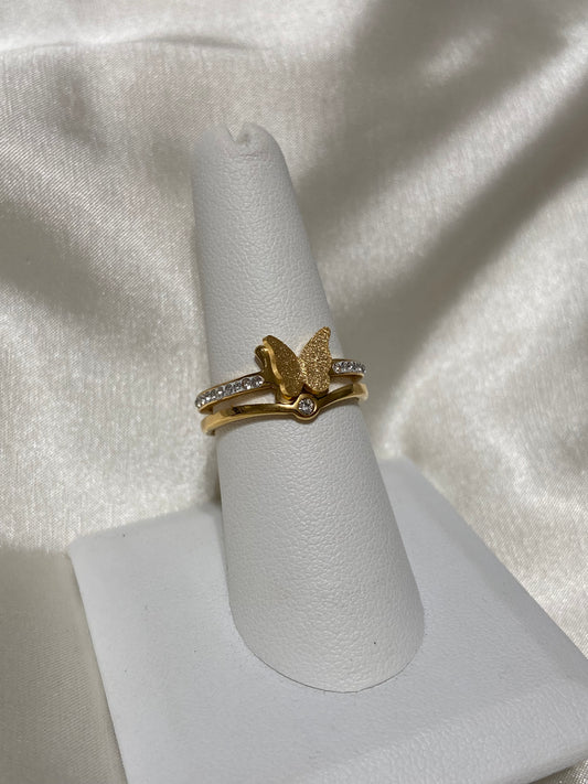 Mini Mother Of Pearl Clover Stainless Steel Dainty Ring