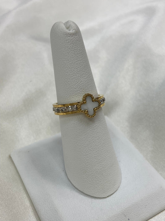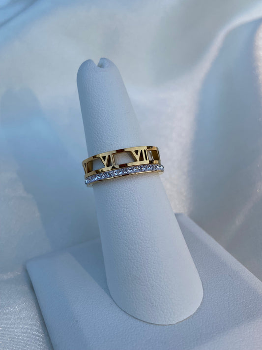 Gold CZ Layered Roman Numeral Stainless Steel Ring
