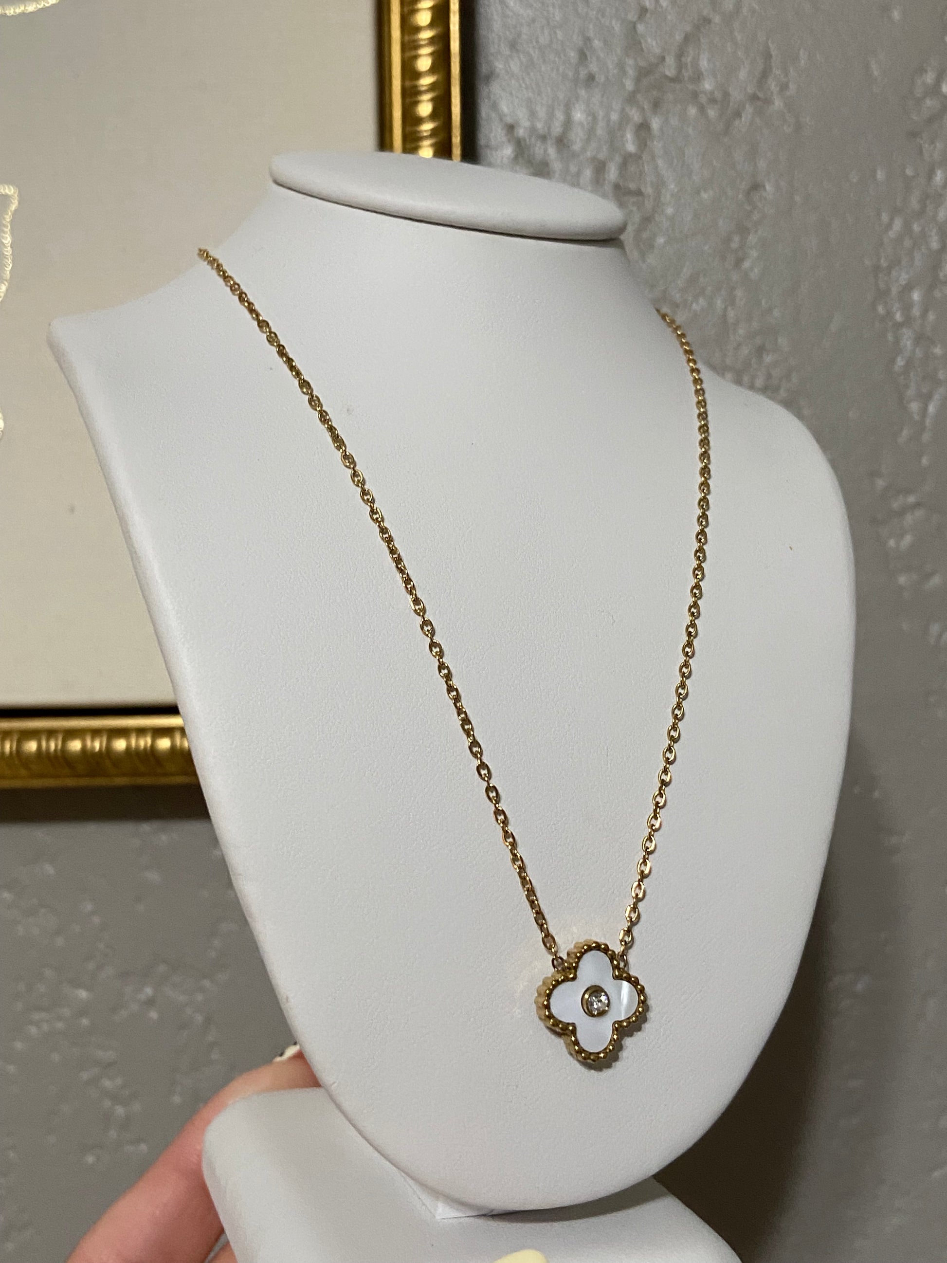White Clover CZ Stainless Steel Gold Necklace