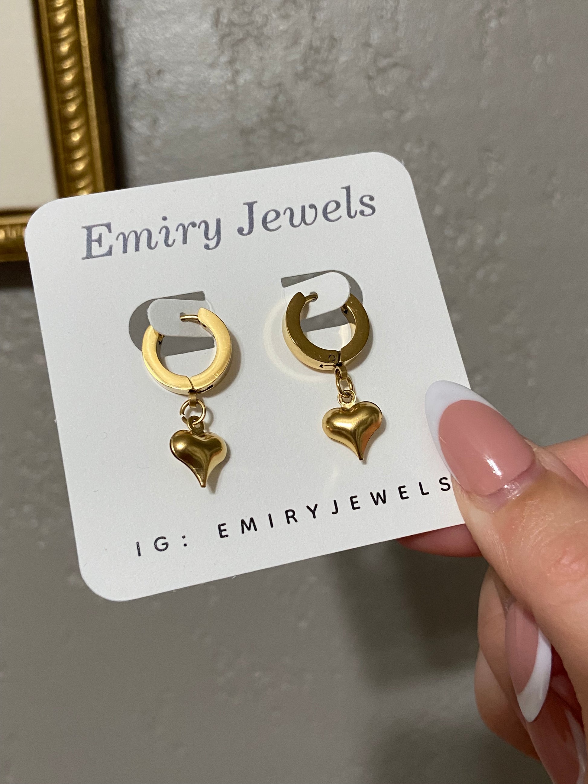 Stainless steel dangle earrings that are high quality, non tarnish, and water friendly. Stainless steel over gold plating.
