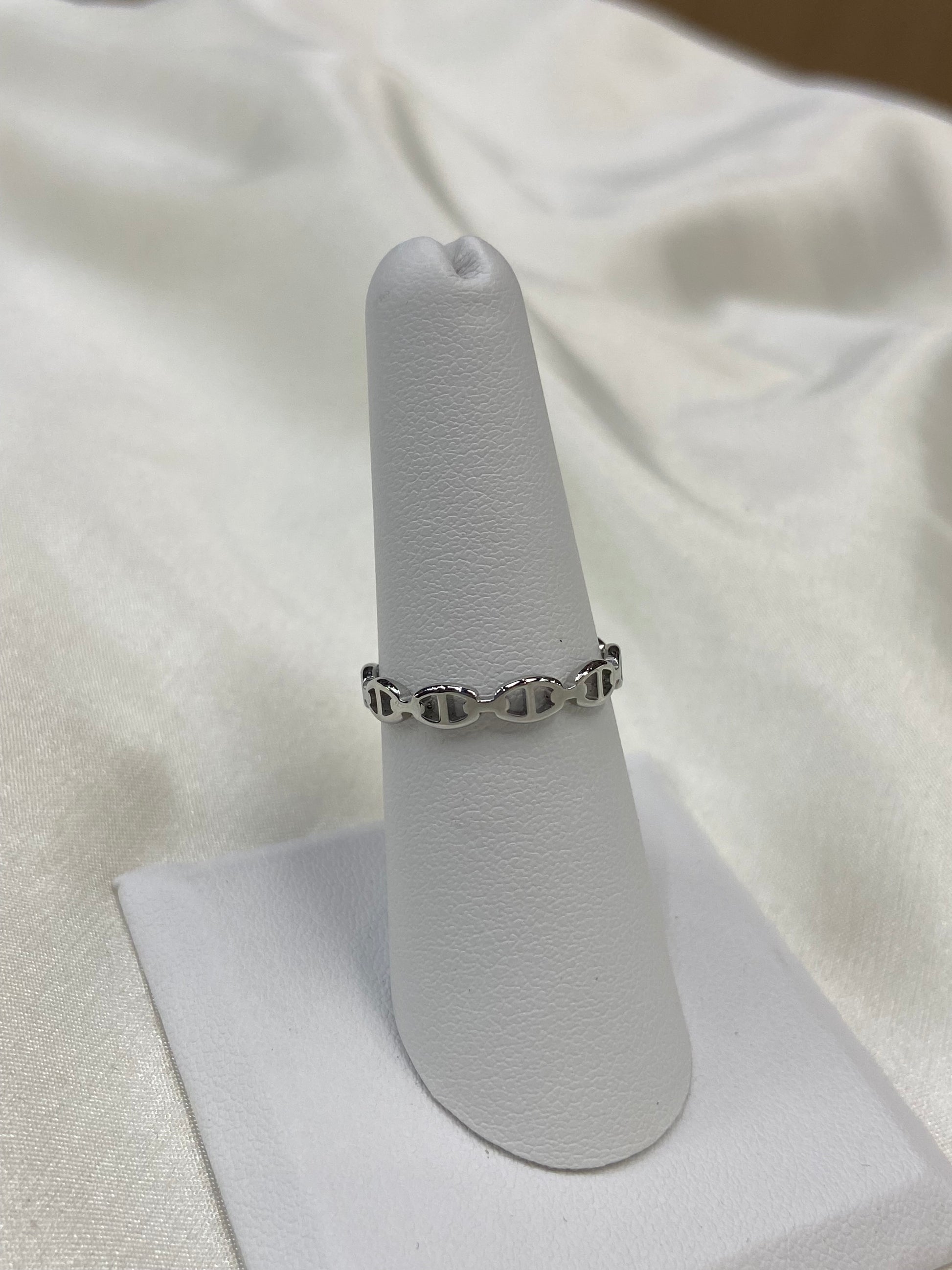 C D thin stainless steel silver ring that is high quality, non tarnish, and water friendly.
