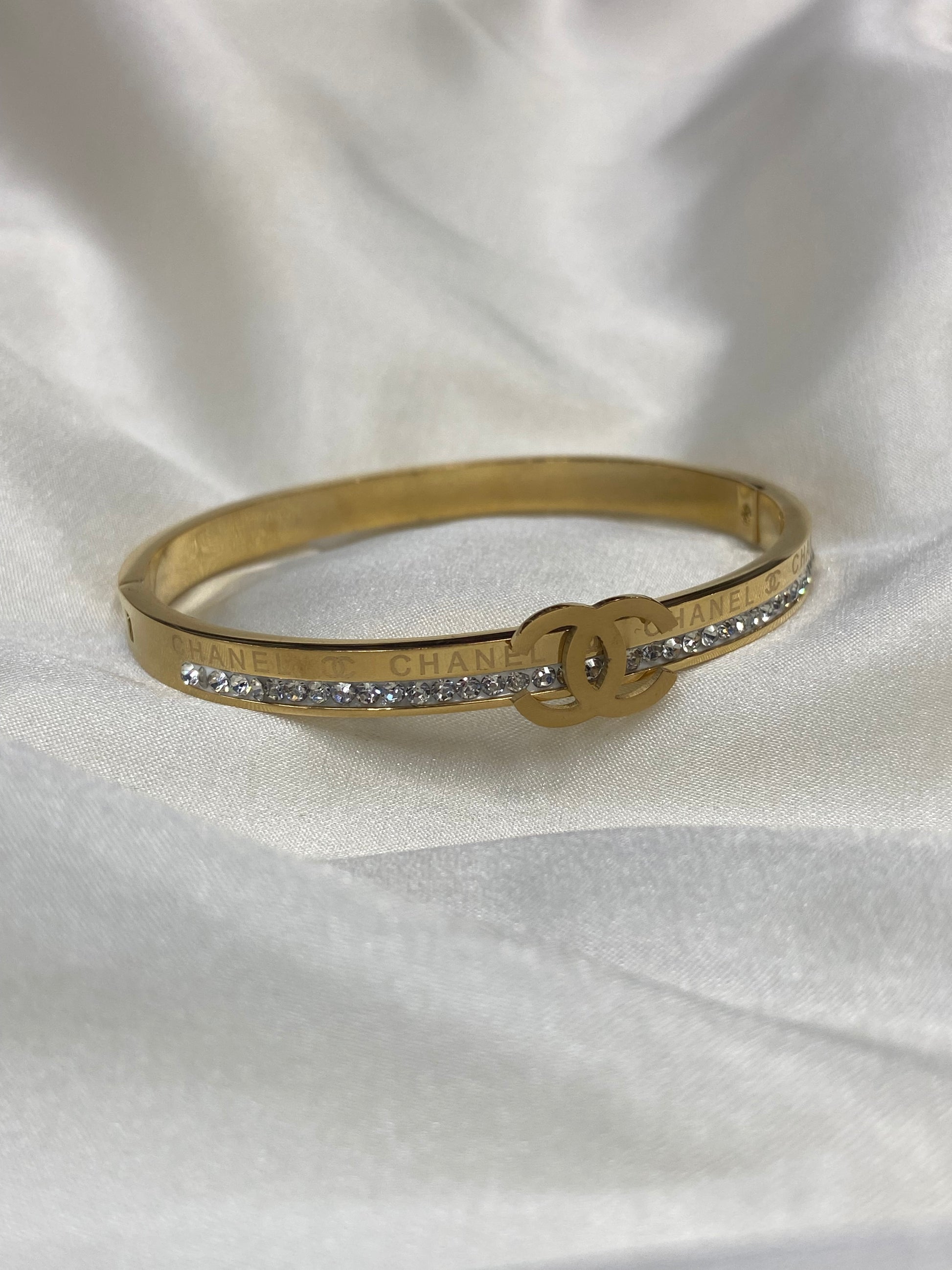 CC CZ Stainless Steel Gold Bangle