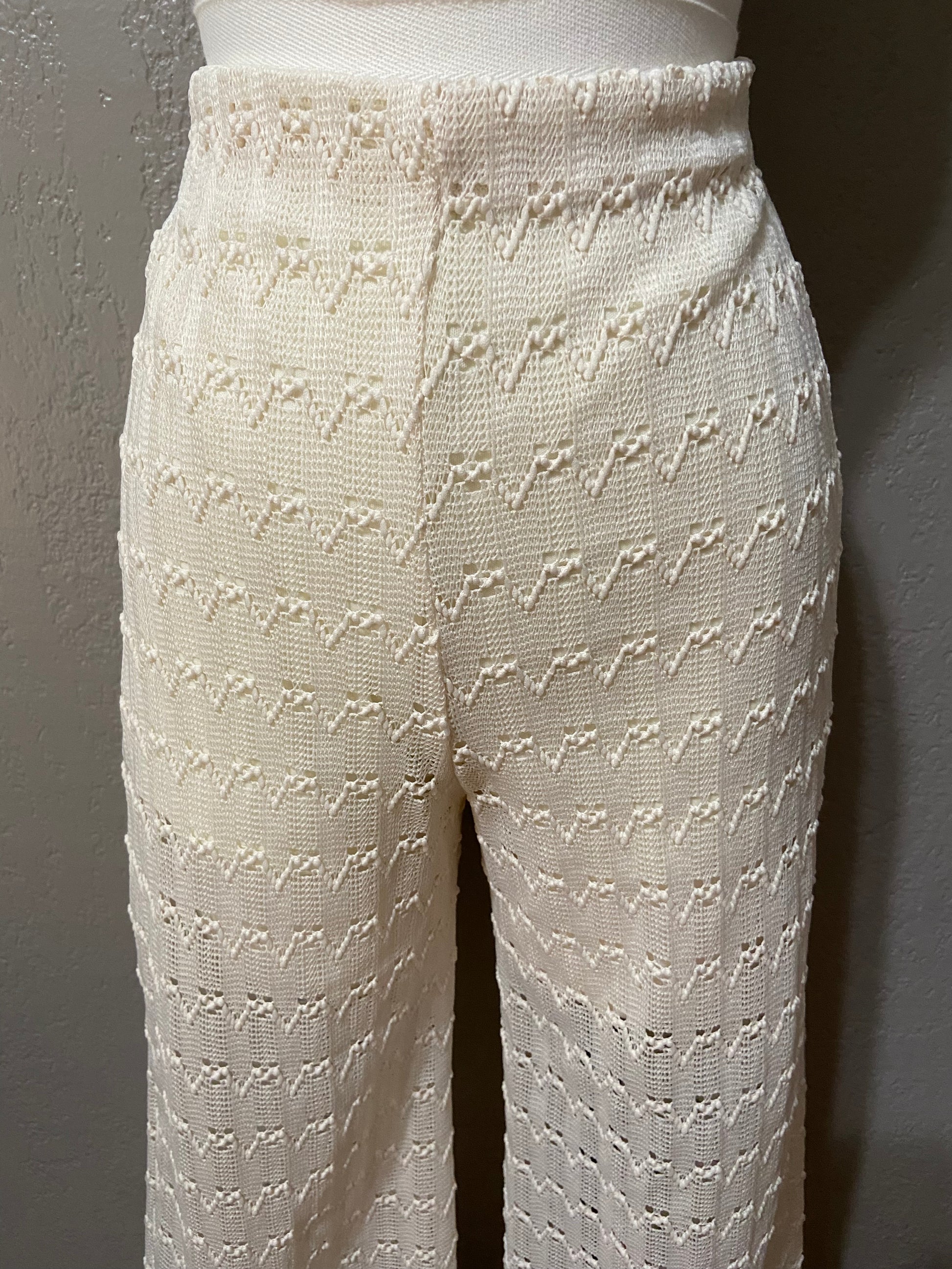 Cream crotchet wide leg pants with double lining shorts. Elastic waistband.