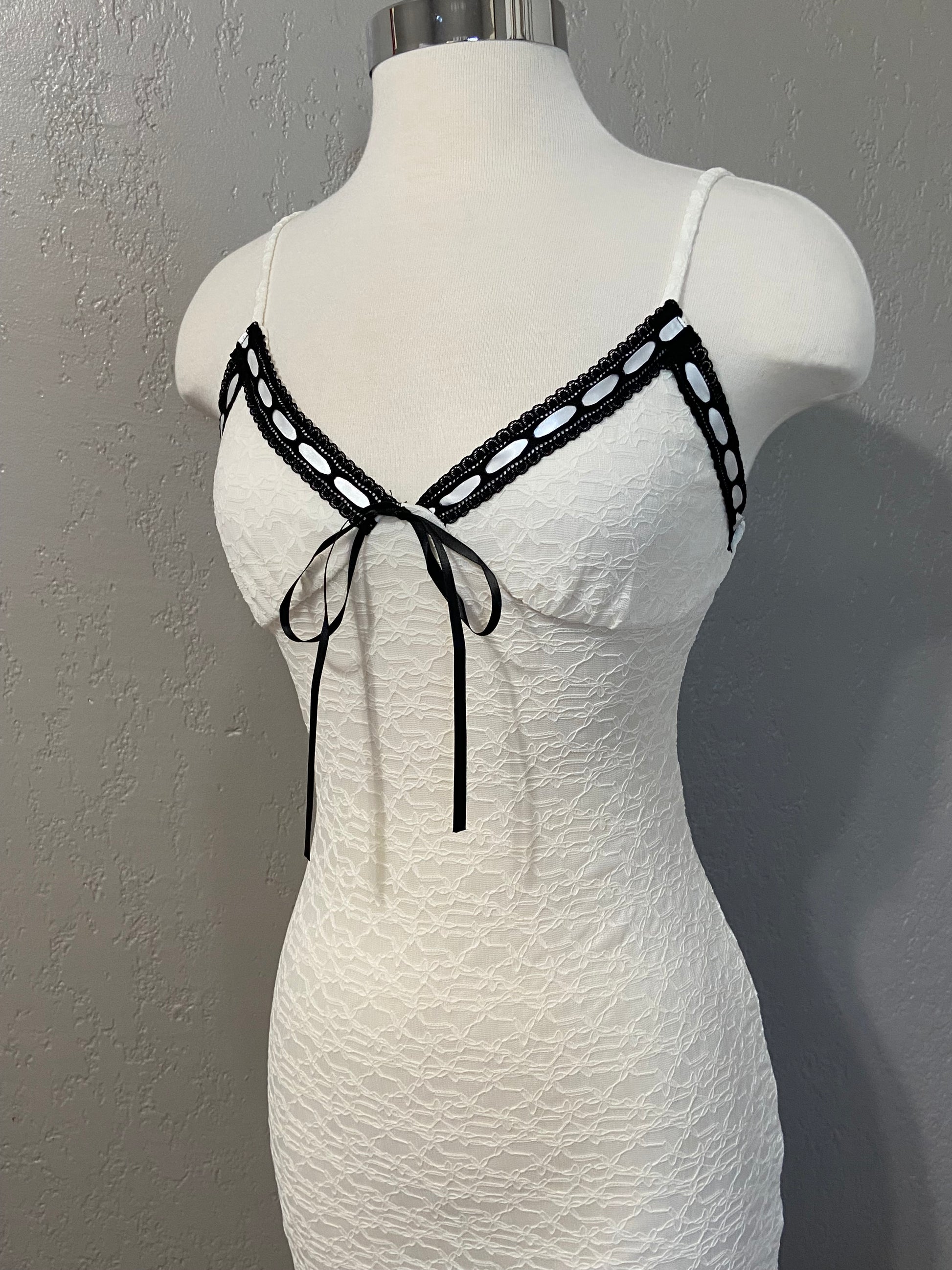 Cream lace Bodycon dress that is double lined and has a slip underneath. Has adjustable straps