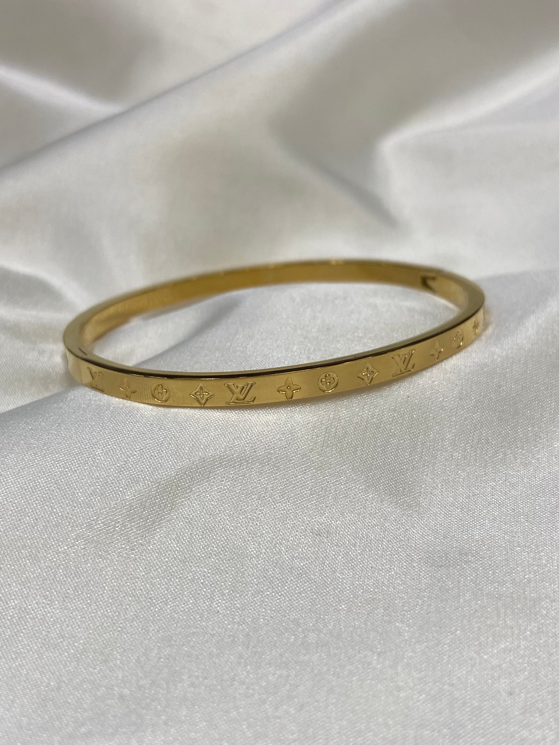 LV Gold Thin Monogram Stainless Steel Bangle