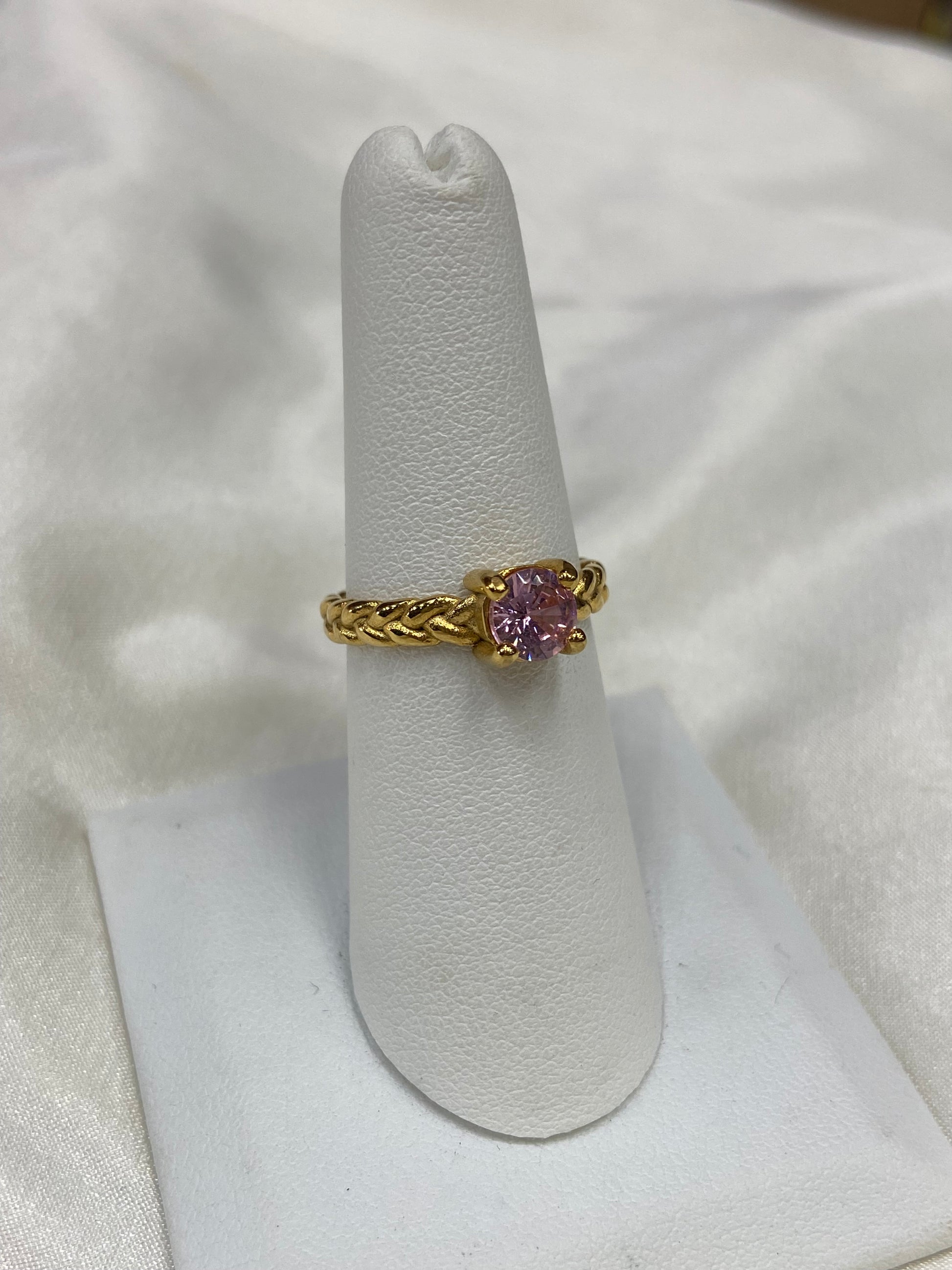Pink twist stainless steel gold ring that is high quality, non tarnish, and water friendly.