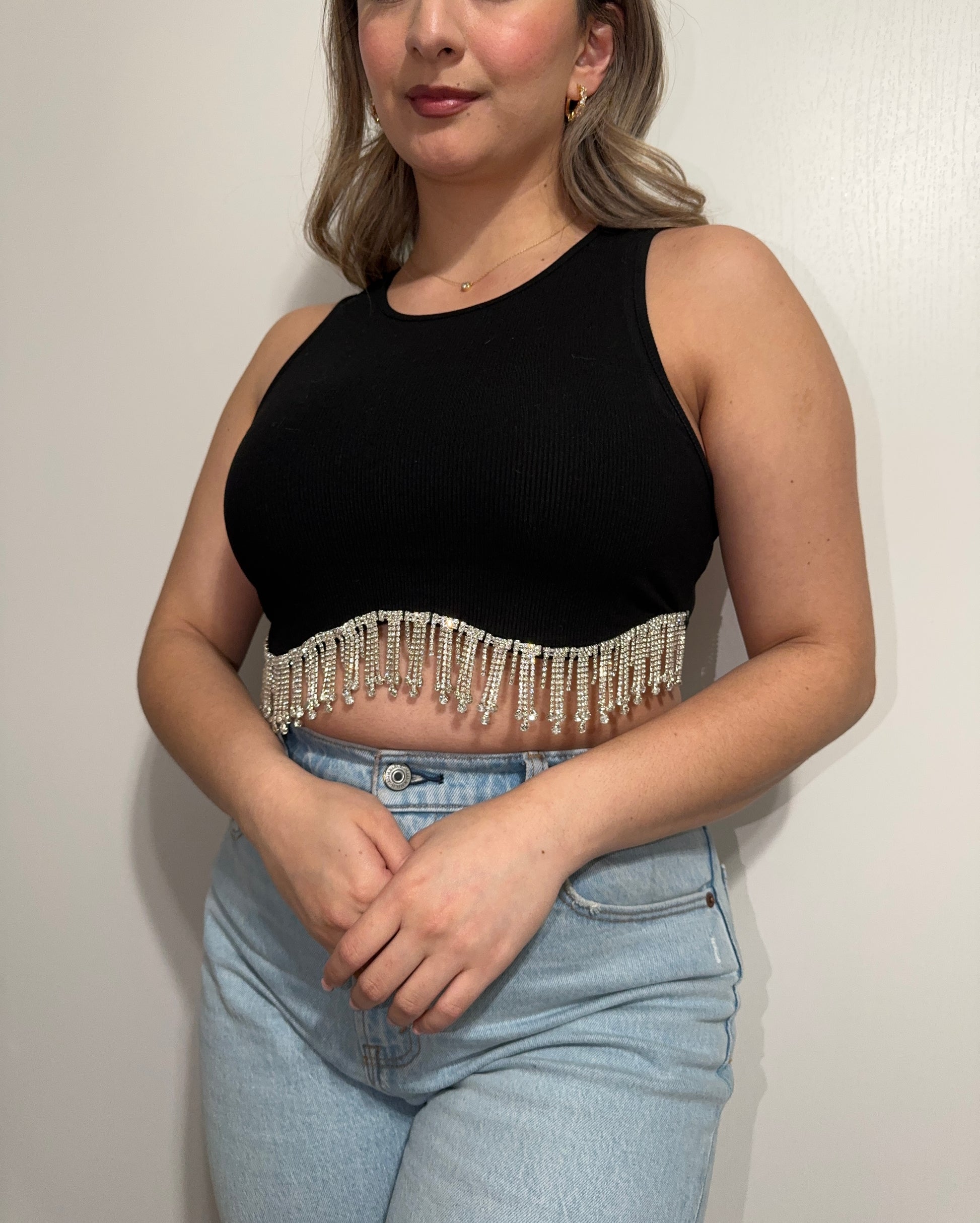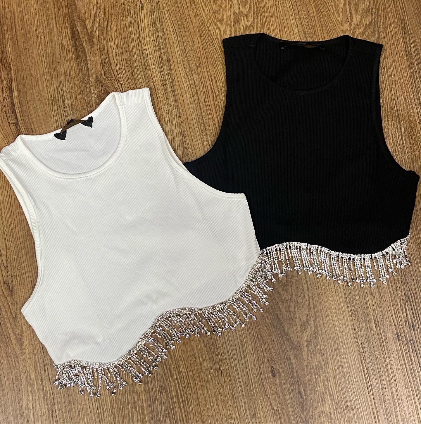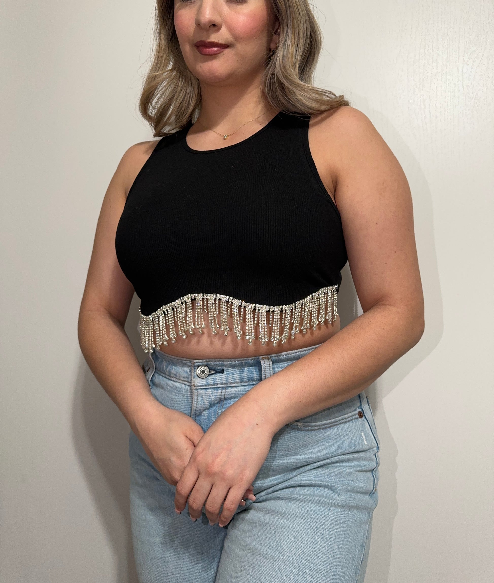 Ribbed rhinestone crop top that very stretchy and elegant. The perfect crop top for any night out occasion.