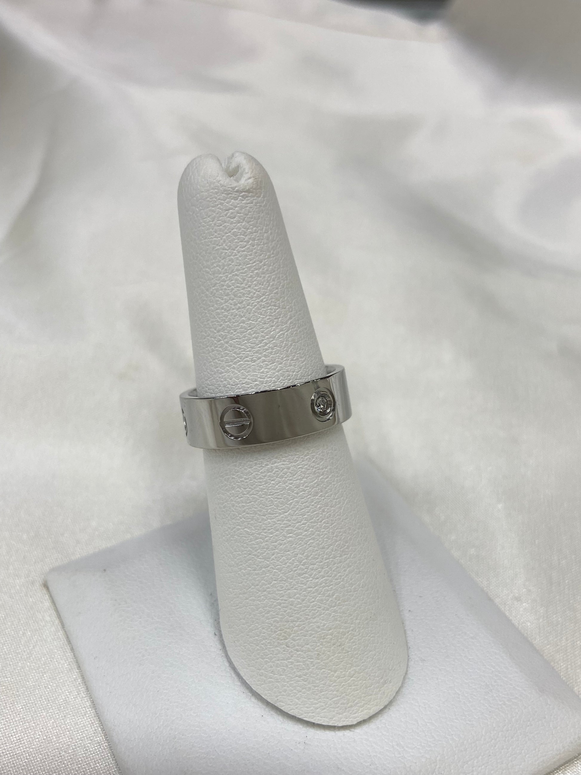 Silver carti CZ stainless steel ring that is high quality, non tarnish, and water friendly. Chunky style ring that is approx 6-7mm. Unisex ring. Matching bangle is available as an option as well.