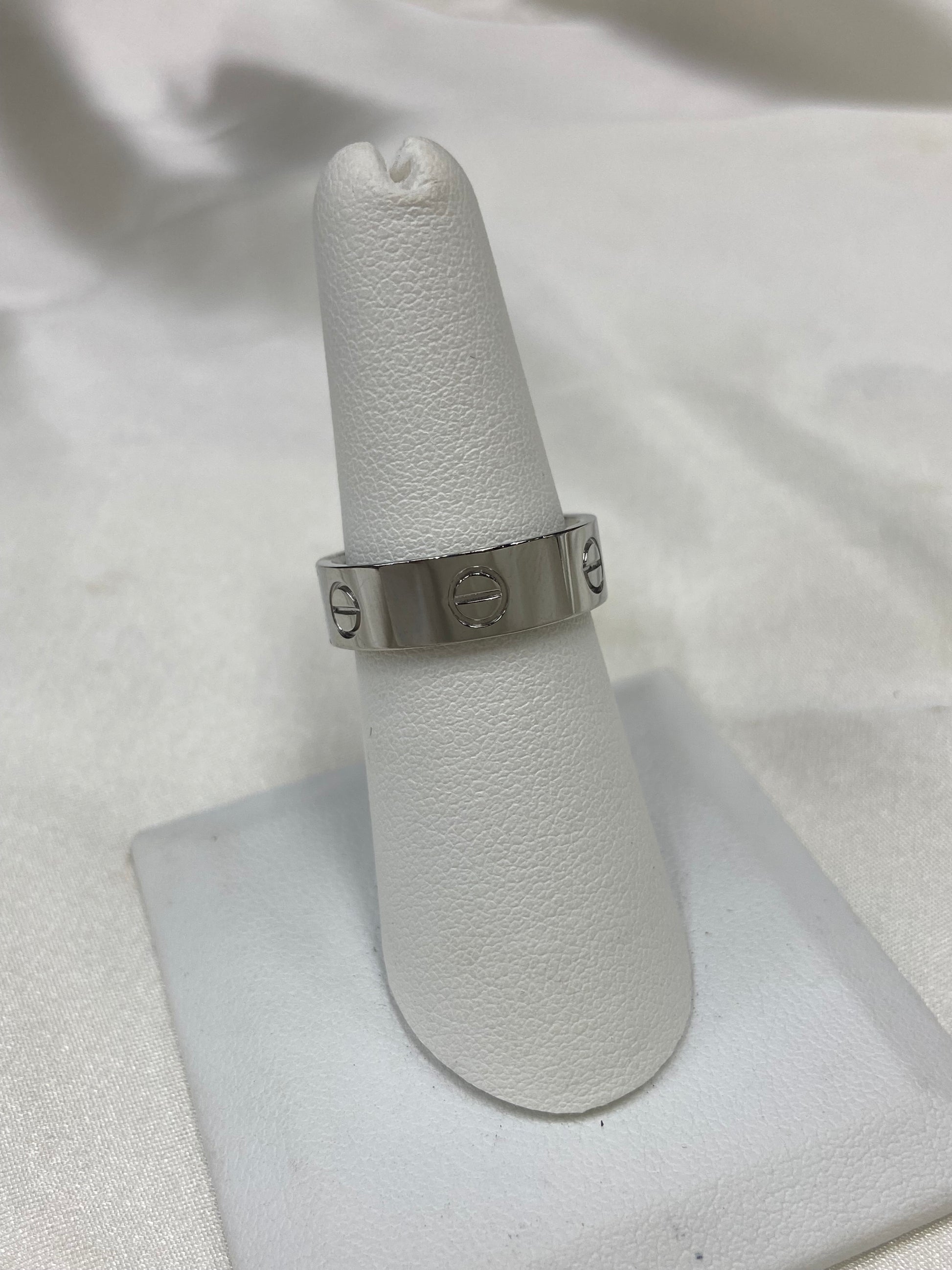 Silver carti stainless steel ring that is high quality, non tarnish, and water friendly. Chunky style ring that is approx 6-7mm. Unisex ring. Matching bangle is available as an option as well.