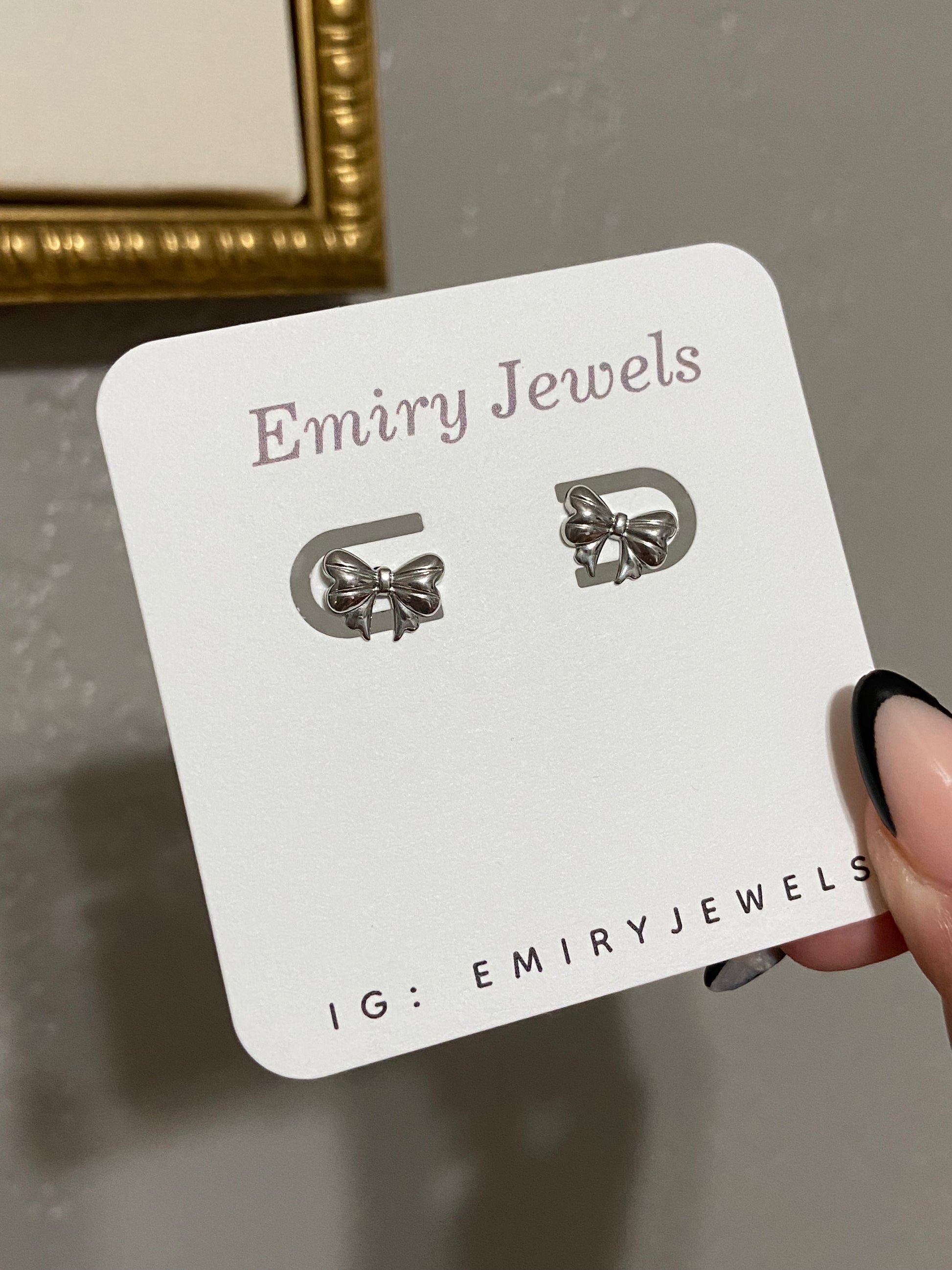 Silver mini bow stainless steel earrings that are high quality, non tarnish, and water friendly. Clutch back closure.
