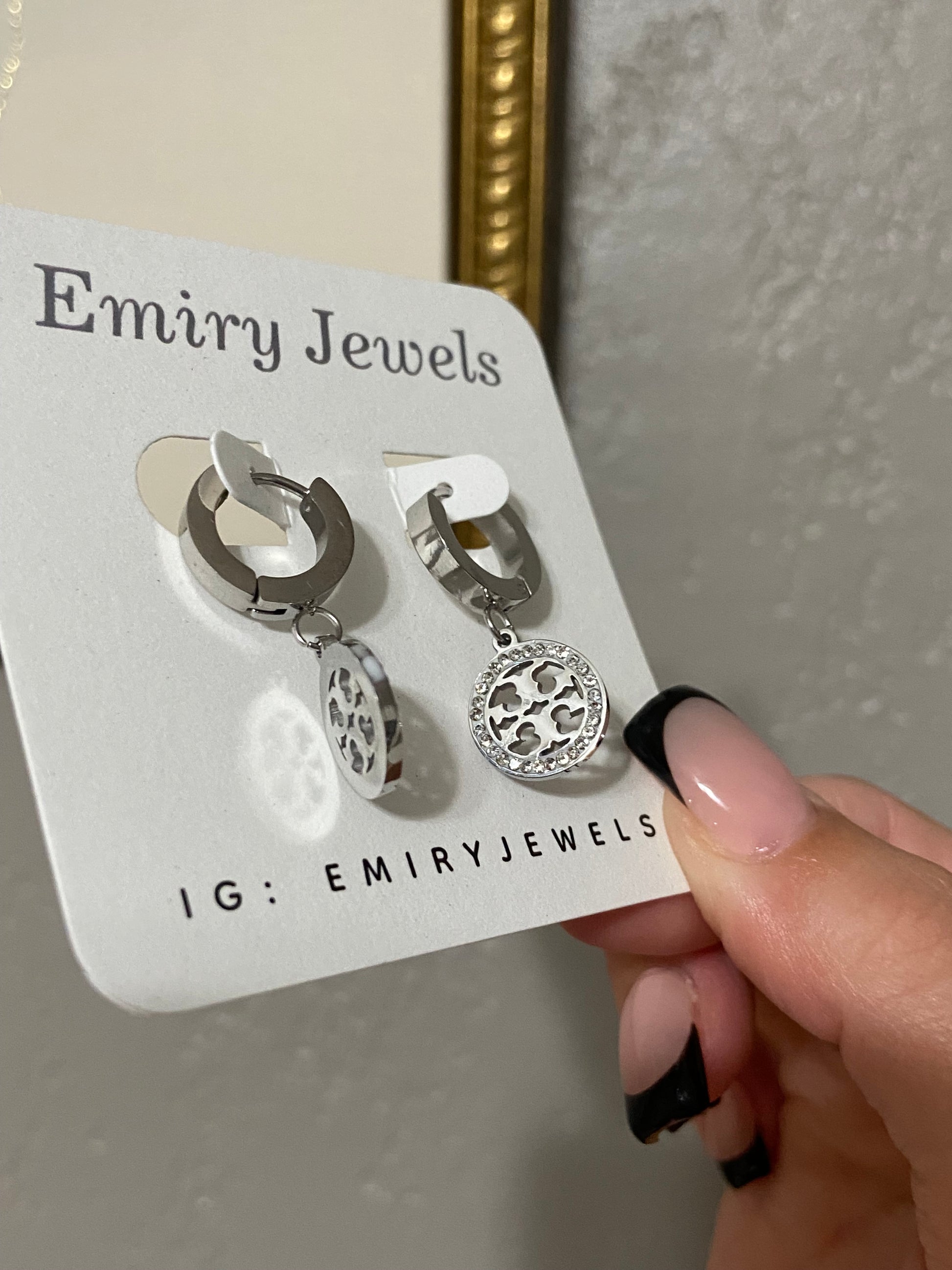 Tory B cz stainless steel huggie logo earrings. Light weight.