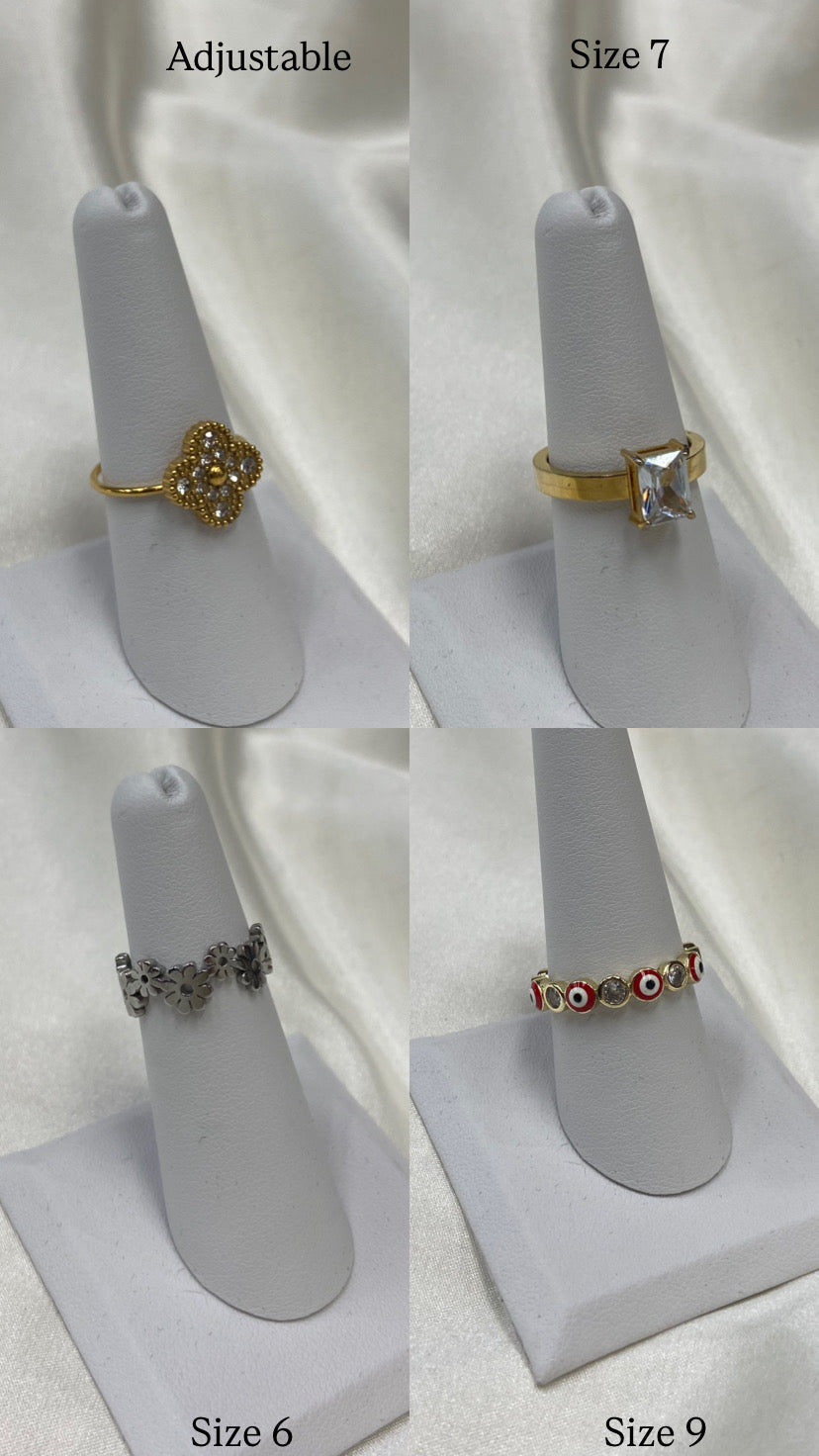 Last chance - gold rings. All rings are stainless steel over gold plating except for the evil eye ring.