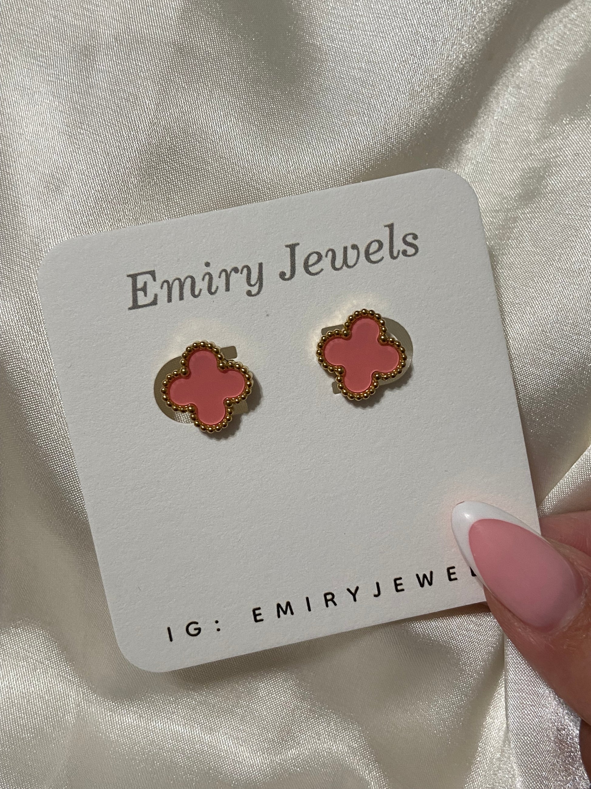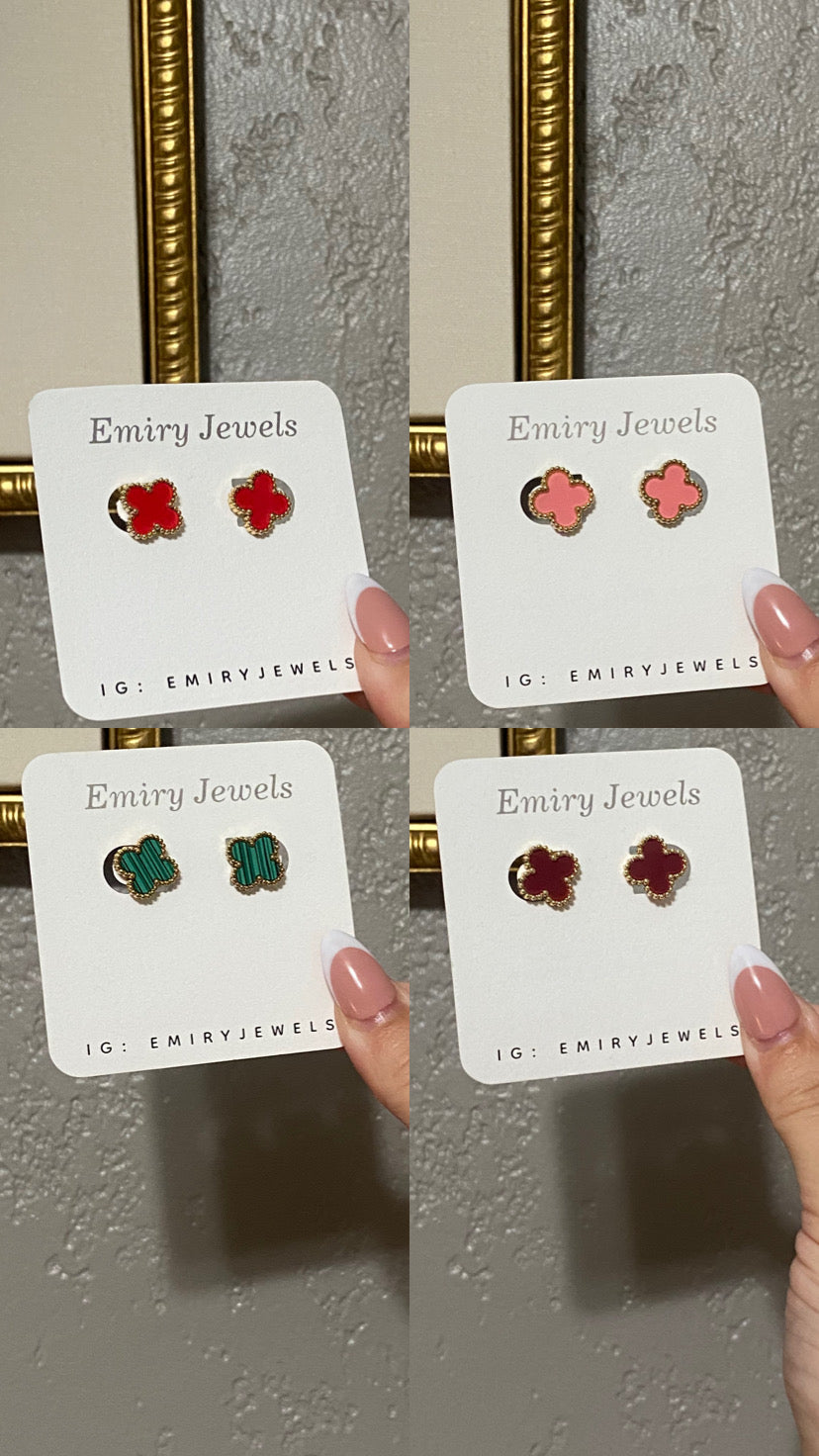 V C A clover stainless steel stud gold earrings that are high quality, non tarnish, and water friendly. Stainless steel over gold plating.