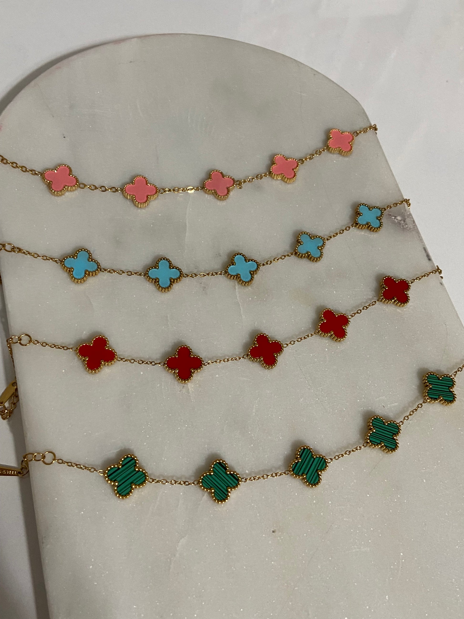 V C A clover stainless steel bracelets that are very trendy. They have an adjustable clasp. All bracelets are double-sided. Gold chain. Stainless steel over gold plating.
