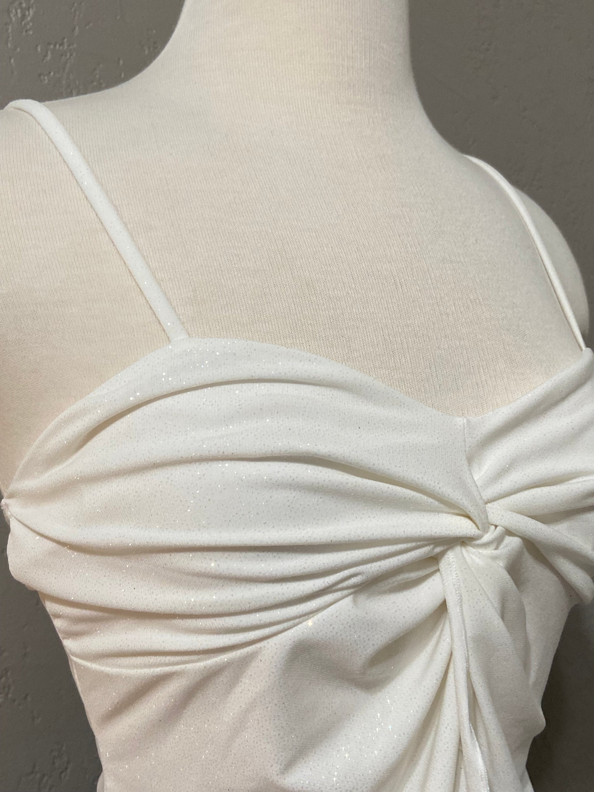 White glitter butterfly tank. Has no adjustable straps. Not see through.
